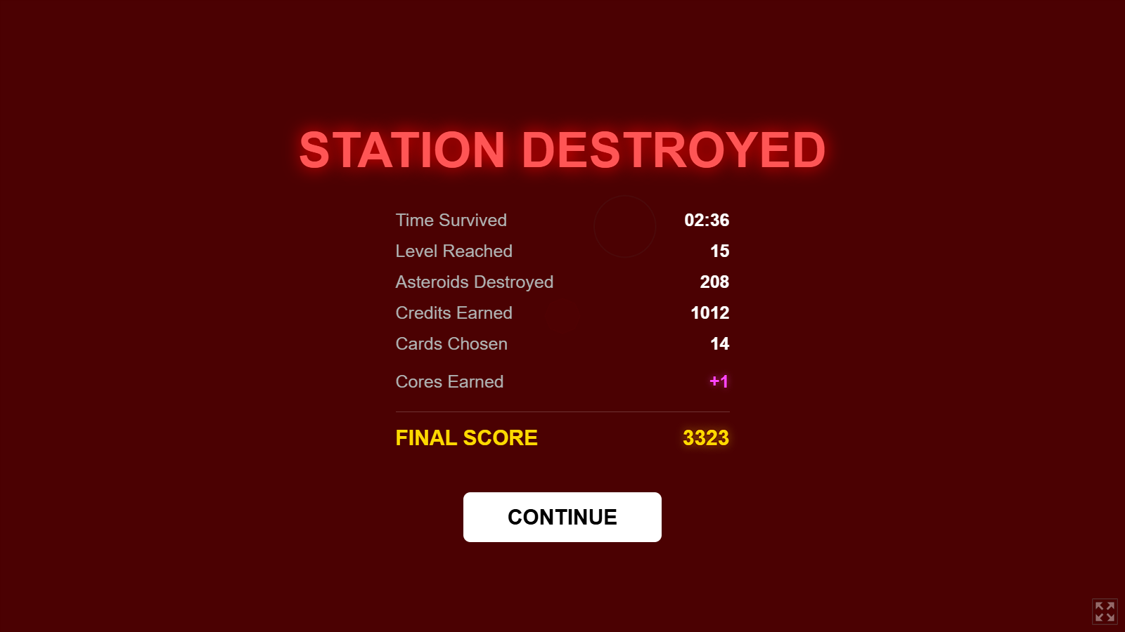 This game just instantly clicks, which is super impressive. Very satisfying to blast the asteroids. I think the sfx could be improved as the effects were a little harsh. Also, I think a quicker turnround between runs as in shorter runs with more focus on progression could work well for a game of this style as the gameplay itself isn't too challenging or complex